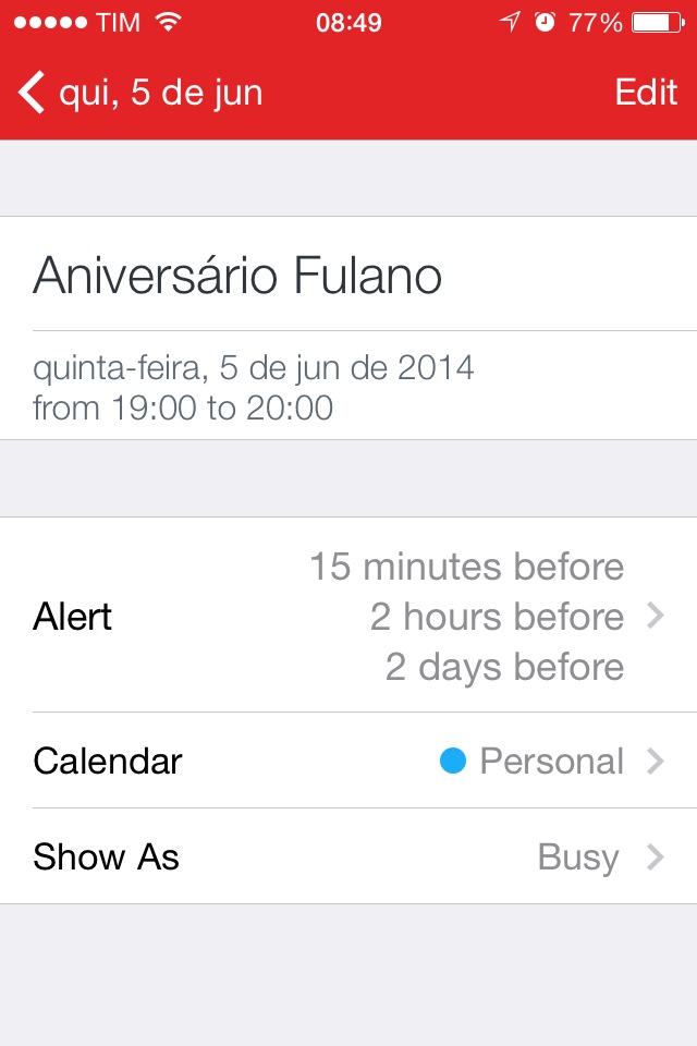 Após clicar nessa ação, e esperar os dois apps se falarem, como resultado, eu tenho um evento marcado na minha agenda. Tudo que eu fiz foi anotar, numa linguagem bem simples, e depois clicar num botão dentro do próprio Drafts.