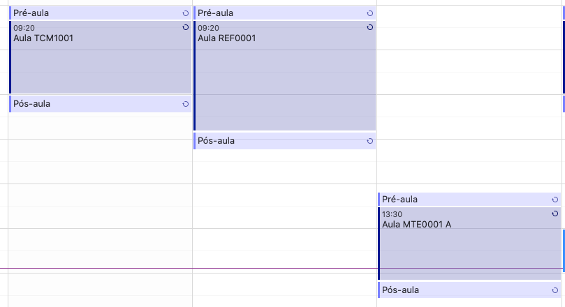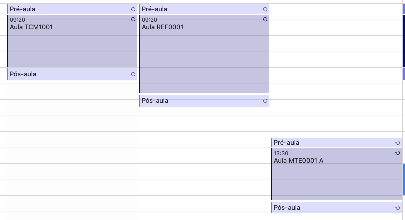 Para implementar isso, além de colocar os horários de aula no meu calendário, eu dedico tempo para um pré- e um pós-aula: