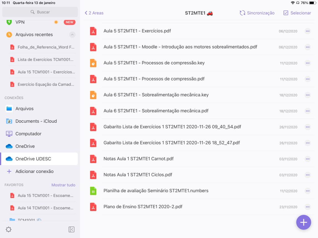 O app mais essencial no meu iPad é o Documents da Readdle, que não sei como não é mais divulgado; é a melhor maneira de navegar por documents salvos no OneDrive, Dropbox, Google Drive, iCloud, ou mesmo na memória interna do iPad, e ainda possui um editor de PDF integrado. Usei esse app para criar pastas para alguns trabalhos que estou criando para os alunos, duplicar arquivos e mover entre diferentes locais, juntar documentos, apagar páginas.