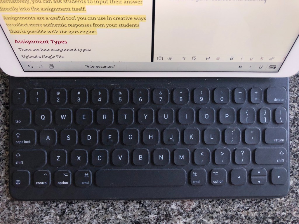 Eu gostaria muito de poder invocar Atalhos pelo Smart Keyboard. É algo que tenho pesquisado mais e mais à medido que uso o iPad com mais frequência. Por exemplo, tenho um atalho para criar uma nota no Bear com aquele time stamp no título; gostaria de, enquanto escrevo uma nota, já conseguir criar outra, sem precisar ir no app de Atalhos.