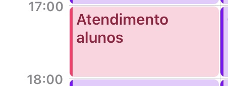 Captura de tela do calendário, mostrando um evento “Atendimento alunos” entre 17:00 e 18:00