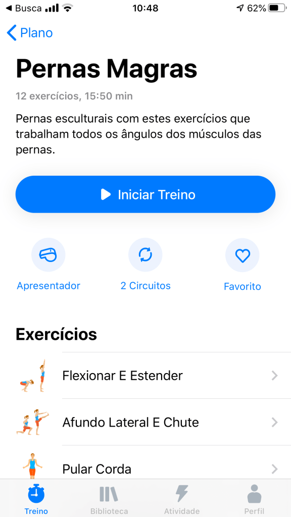 Minha escolha de app de exercícios é o Seven, que propõe circuitos de sete minutos de exercícios sem equipamentos. Não se deixe enganar pelo tempo, pois o ritmo é intenso. Eu sempre faço dois circuitos, o que me dá 15 minutos de suor para começar o dia.
