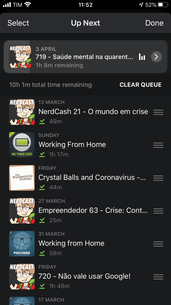 Pode ser que falte um pouco de diversidade na minha fila de podcasts.
